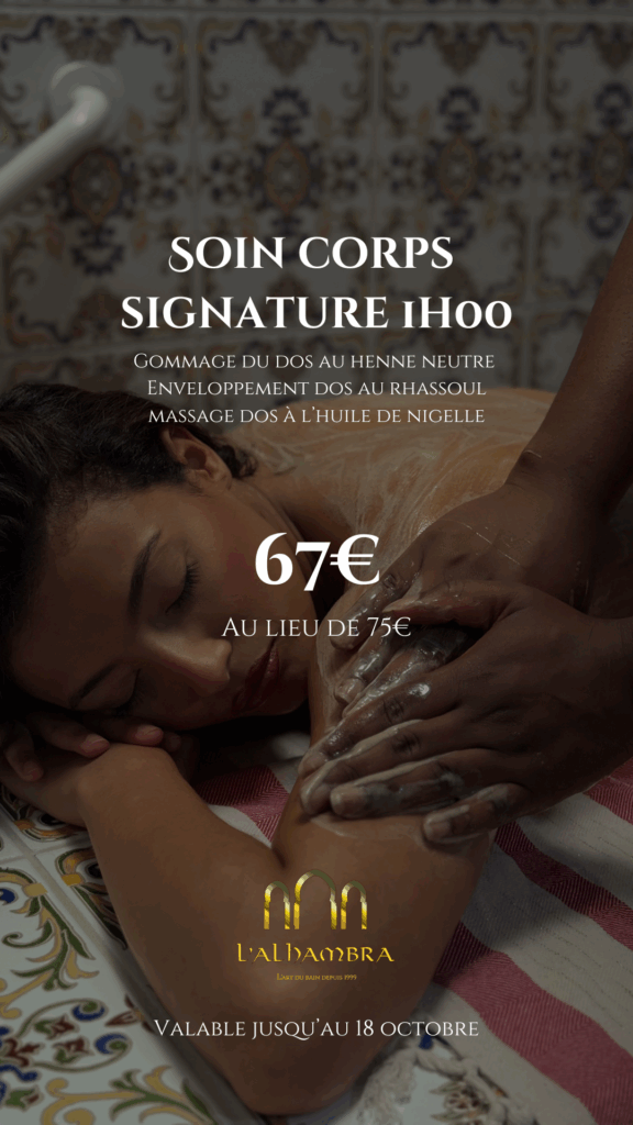 Le hammam L’ Alhambra offre une initiation aux rituels ancestraux du bain et une découverte de soins orientaux entièrement naturels.